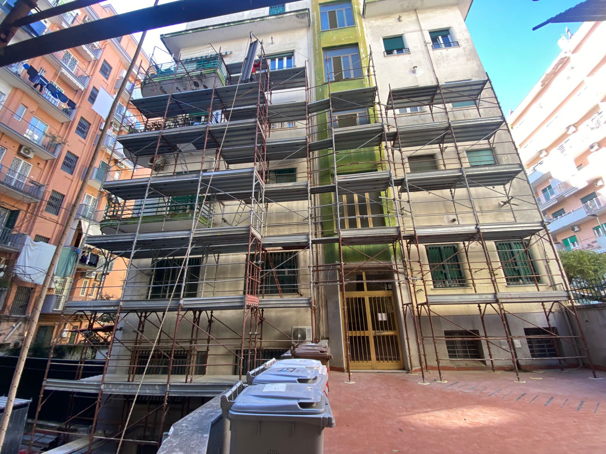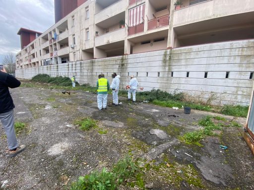 Sistemazione e Pulizia di aree di cantiere di circa 13.000 mq in Scampia (NA) con trasporto e smaltimento di residui di lavorazione + messa in sicurezza di un fabbricato mediante la chiusura del perimetro del fabbricato e degli accessi alle scale con pannelli di recinzione in cemento già presenti in cantiere