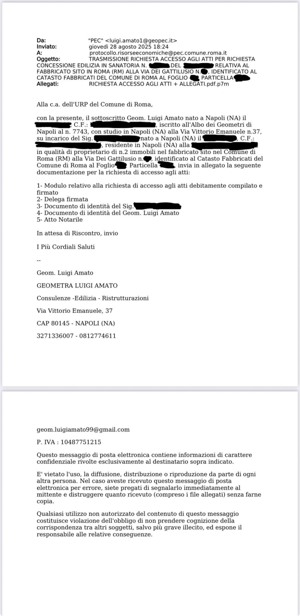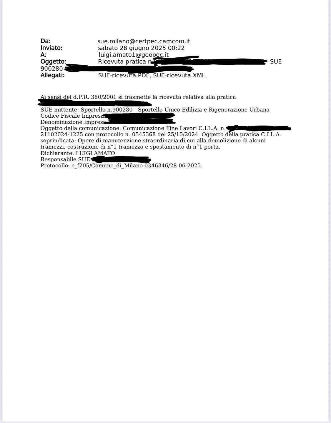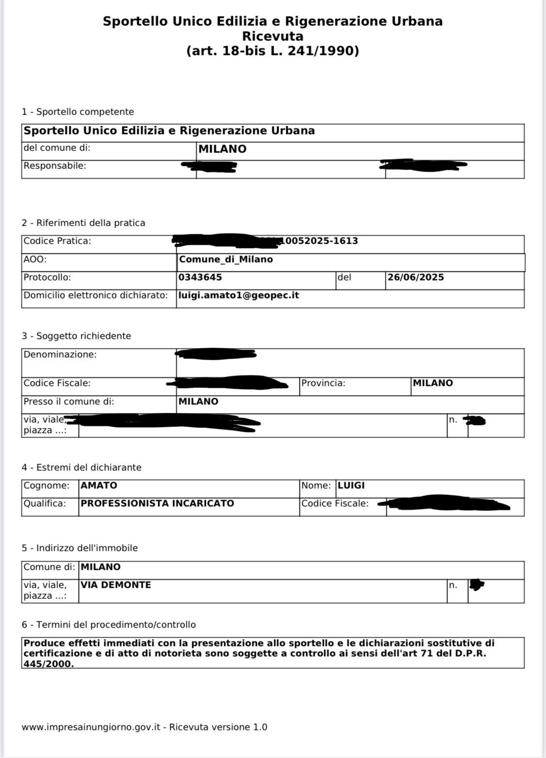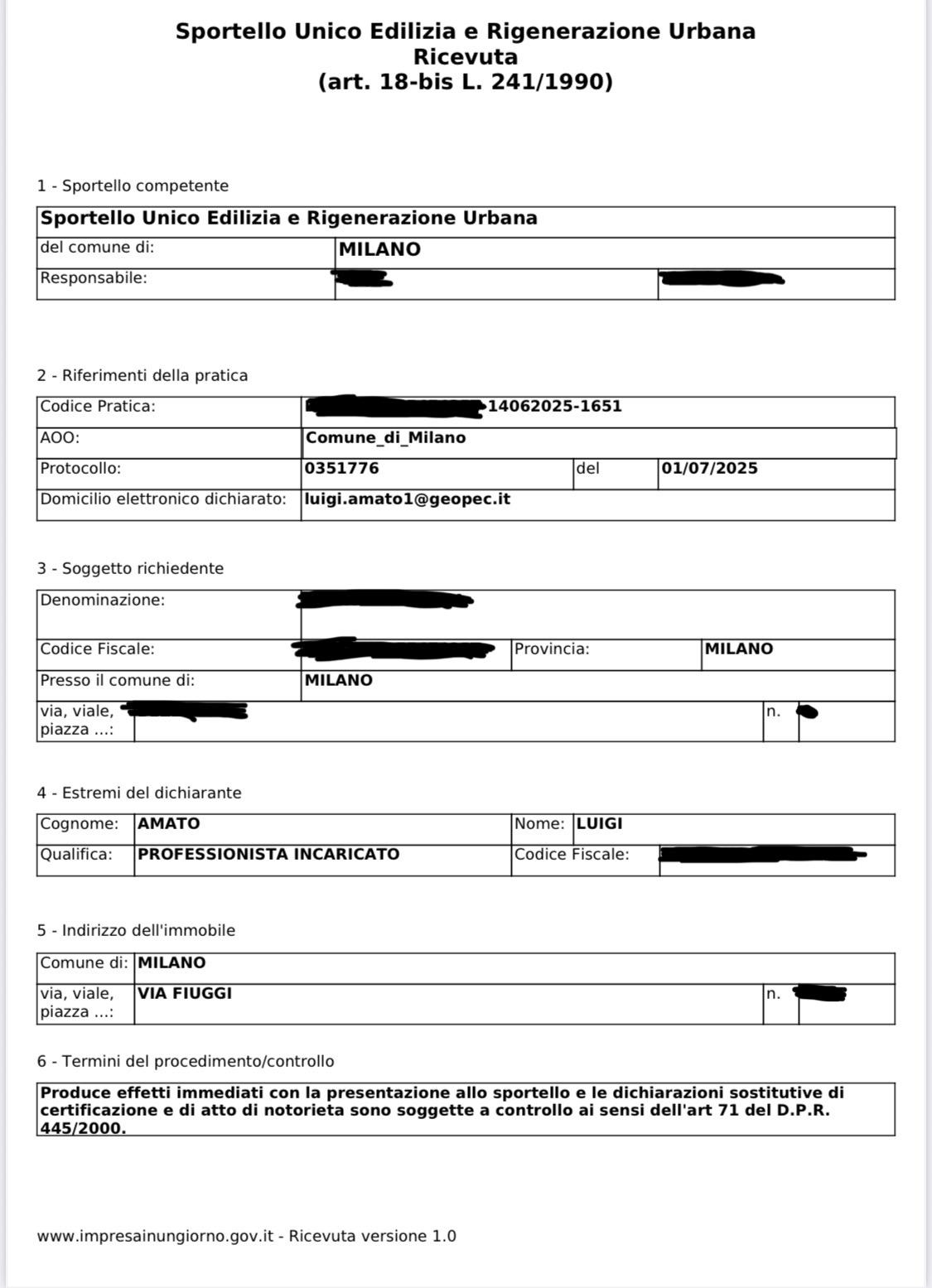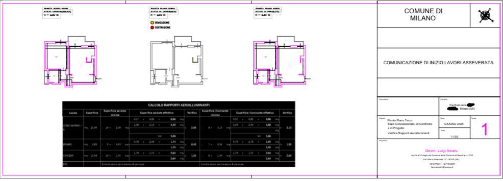Estratti di alcune delle pratiche edilizie presentate dallo STUDIO TECNICO GEOMETRA LUIGI AMATO sia sul territorio Campano che sul territorio Lombardo.