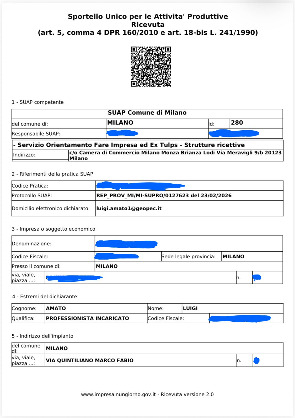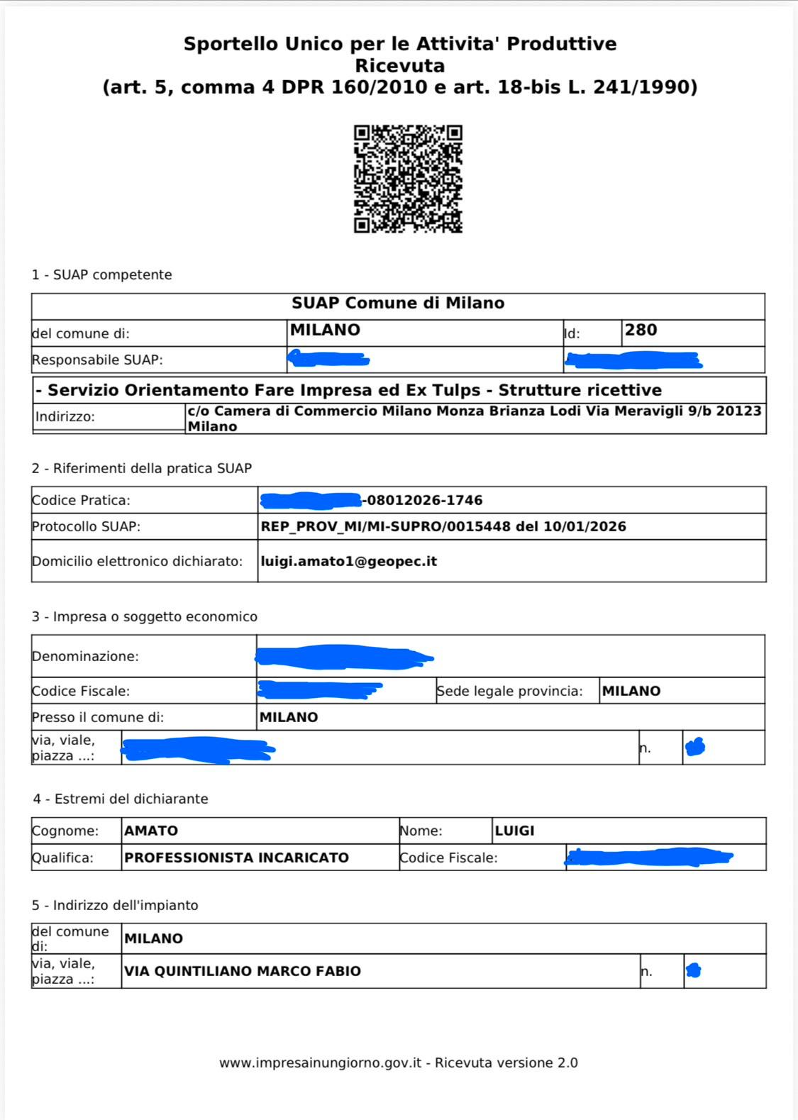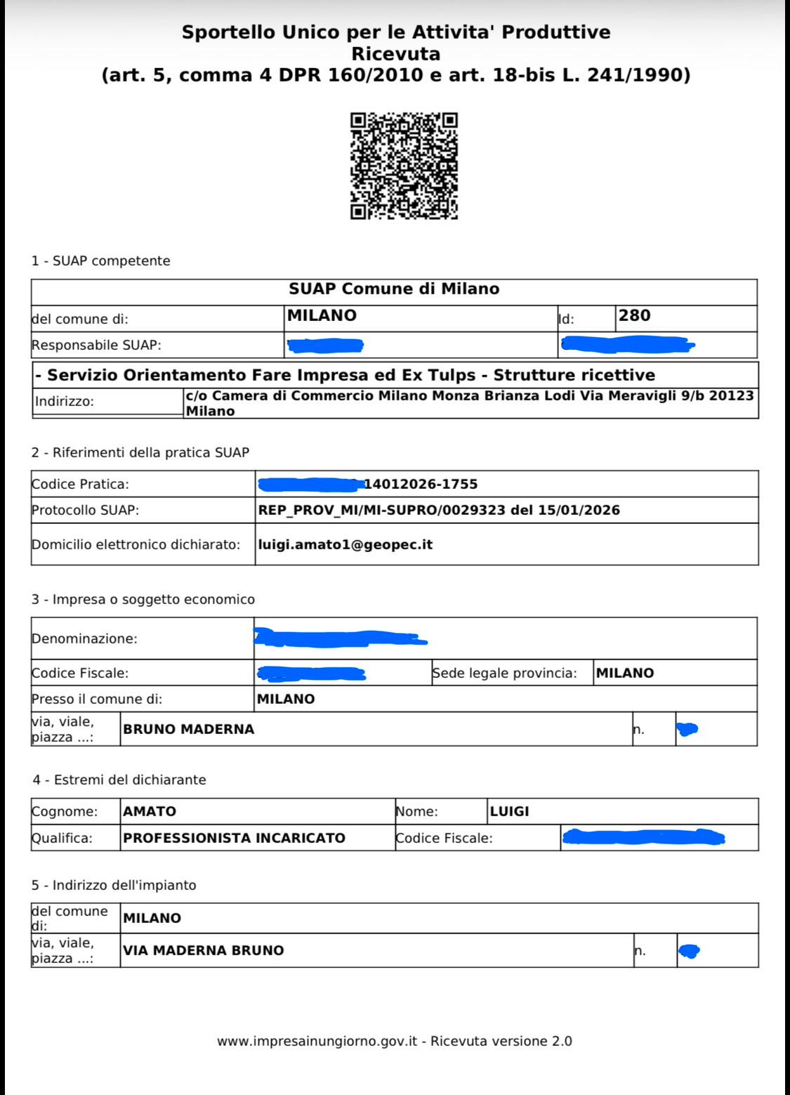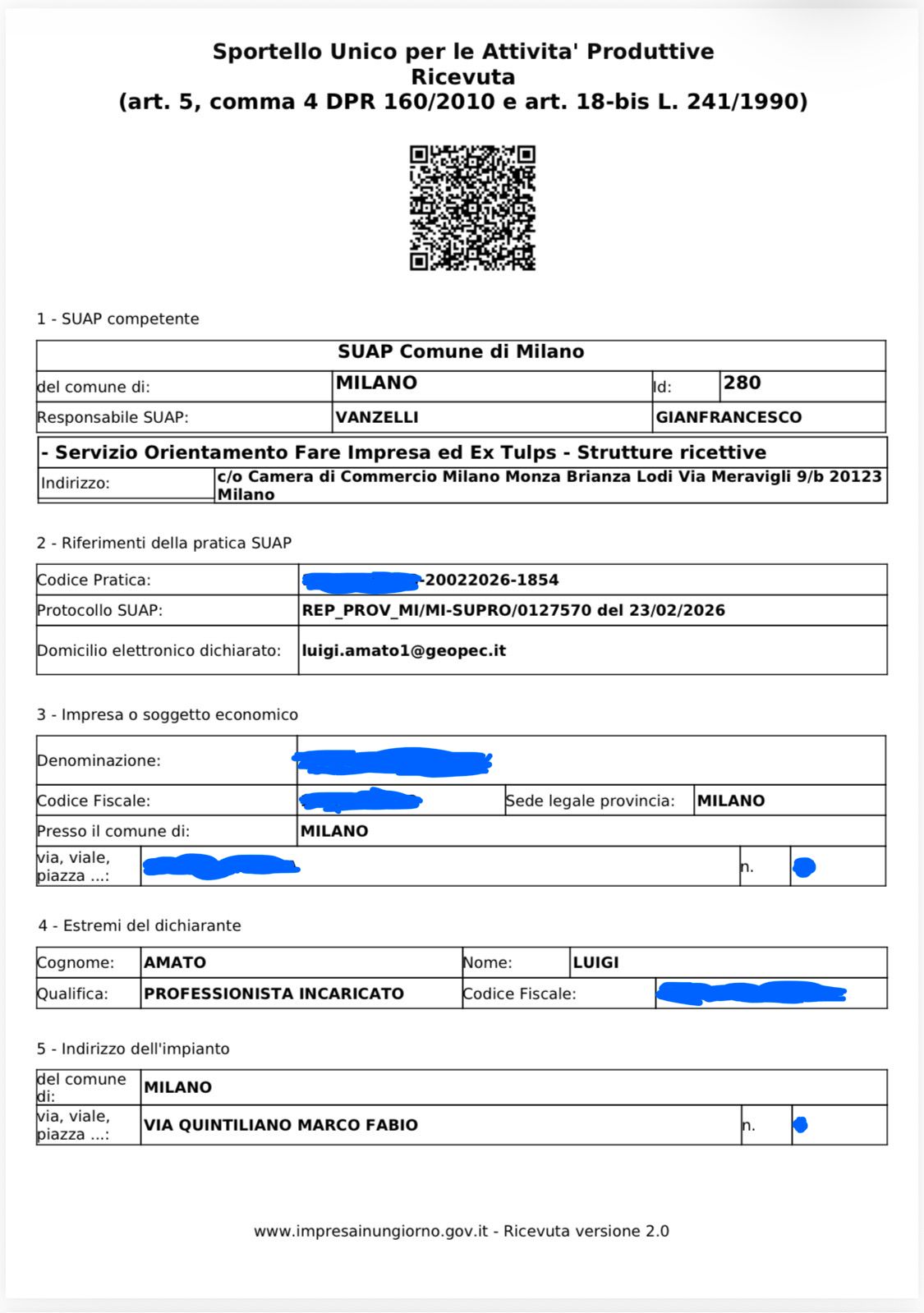 Trasmissione di n. 2 pratiche SCIA per Foresteria Lombarda al SUAP del Comune di Milano.