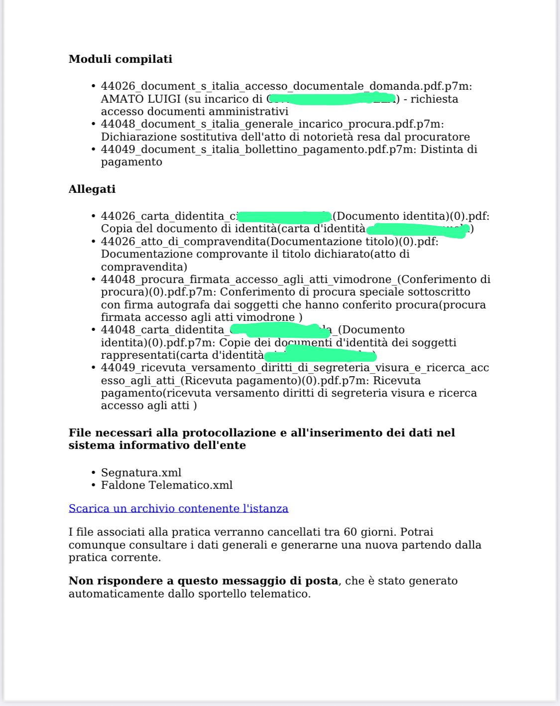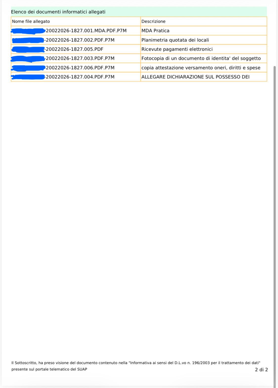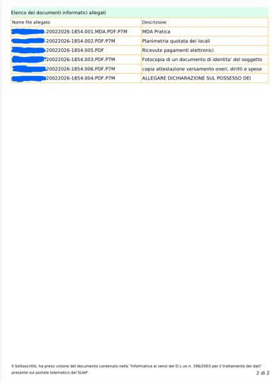 Pratiche complete di elaborati grafici e ricevute di protocollazione.