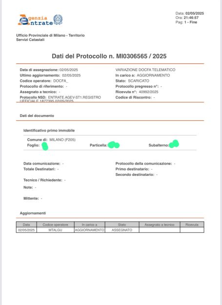 Pratiche Catastali eseguite, quali Accesso Agli Atti, Presentazioni di Docfa per variazione della planimetria a seguito dei lavori di ristrutturazioni eseguiti